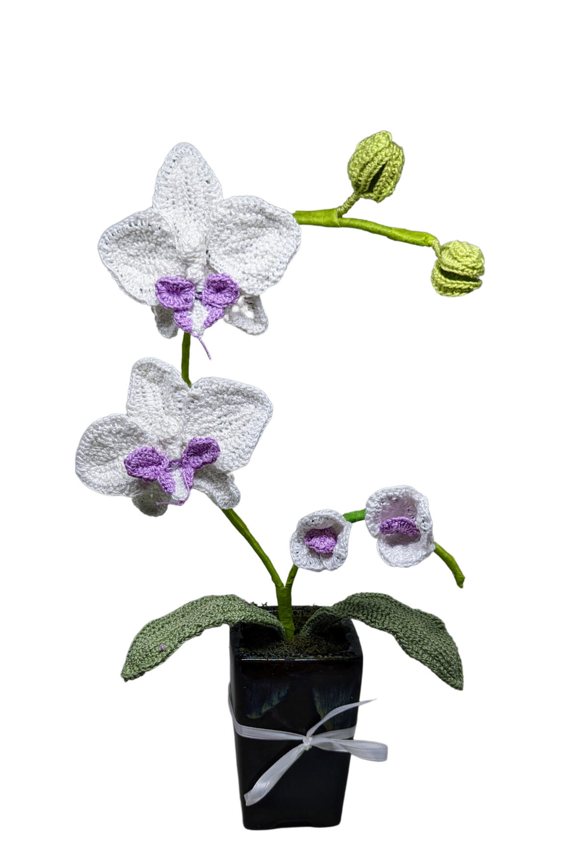 I have been crocheting since I was a young child, and my passion for it has continued throughout the years. Recently, I have challenged myself to take on more complex and time-consuming projects than before, such as the crocheted orchid featured below, as well as blankets, scarves, bags, and more.